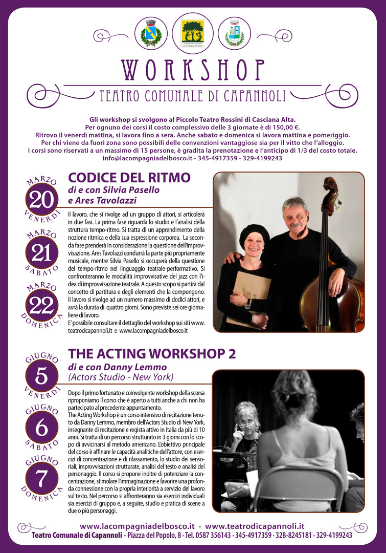 Un altro sottotesto può essere considerato il viaggio, inteso come trasformazione, metamorfosi, conoscenza, temi che troveremo nell’intero ciclo partendo dalla nostra fortunata produzione Underground Wanderlust (2-3 Novembre al Piccolo Teatro Rossini) fino all’incontro con il musicista ambasciatore della cultura Rom nel mondo Alexian Santino Spinelli Altri fiori all’occhiello sono Il ricco programma delle Domeniche dei Bambini così come una intensa attività della Scuola delle Arti con corsi, workshop di interesse nazionale e l’innovativo progetto “La Mirabile Follia” dedicato ai giovani delle scuole superiori.